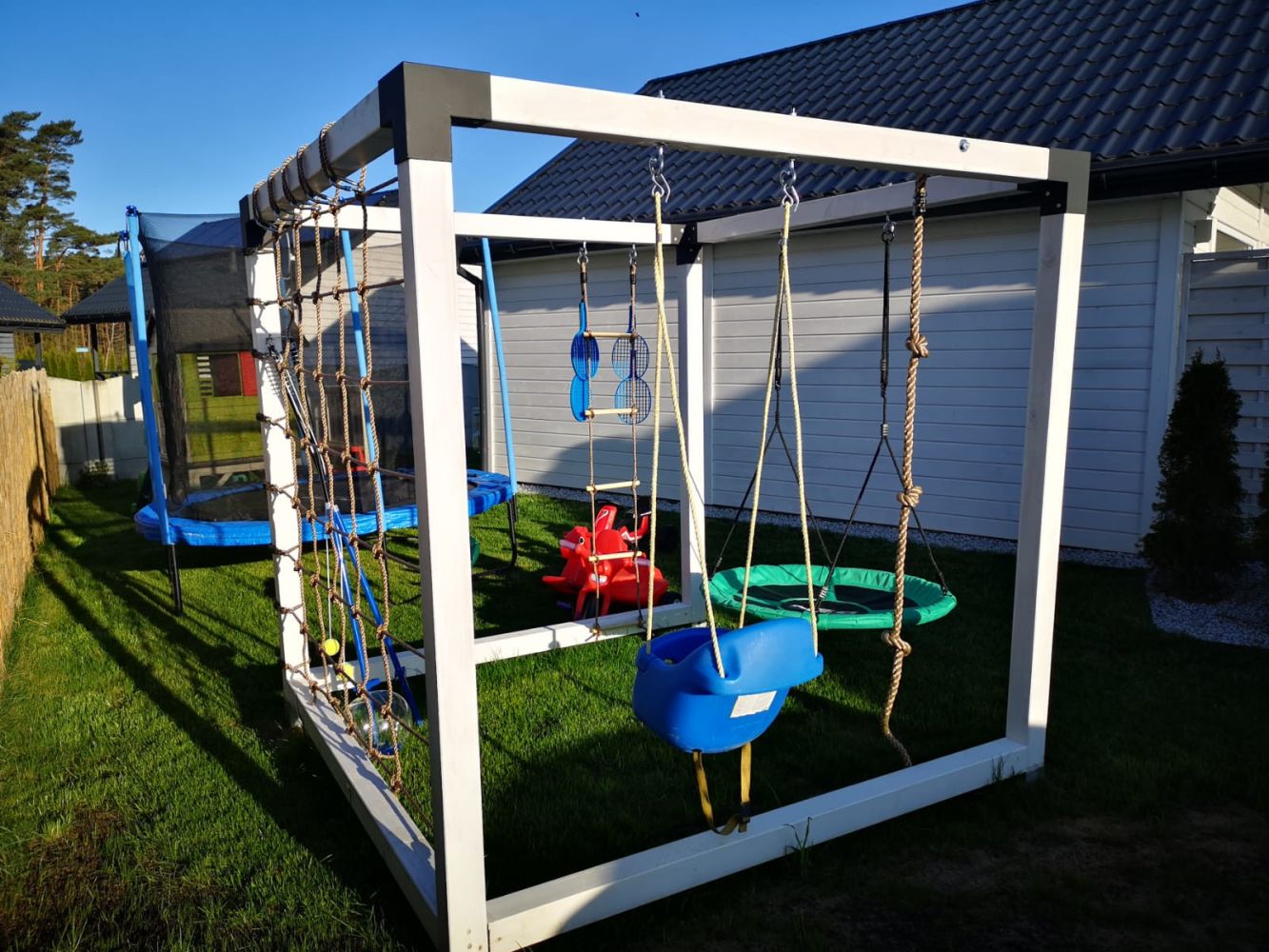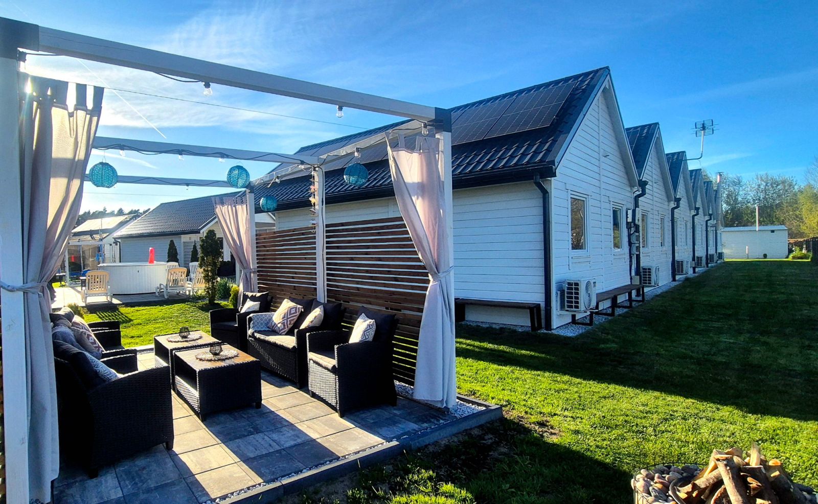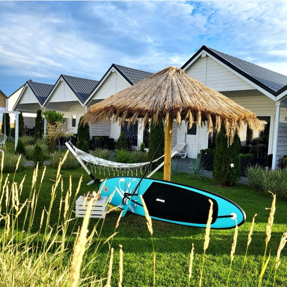 Klimatyczne domki w stylu nadmorskim, komfortowo wyposażone z funkcjonalną kuchnią.